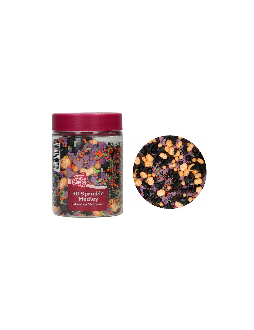 Sprinkles mezcla de calabazas, sombreros de bruja, escobas, mix de perlas y nonpareils.