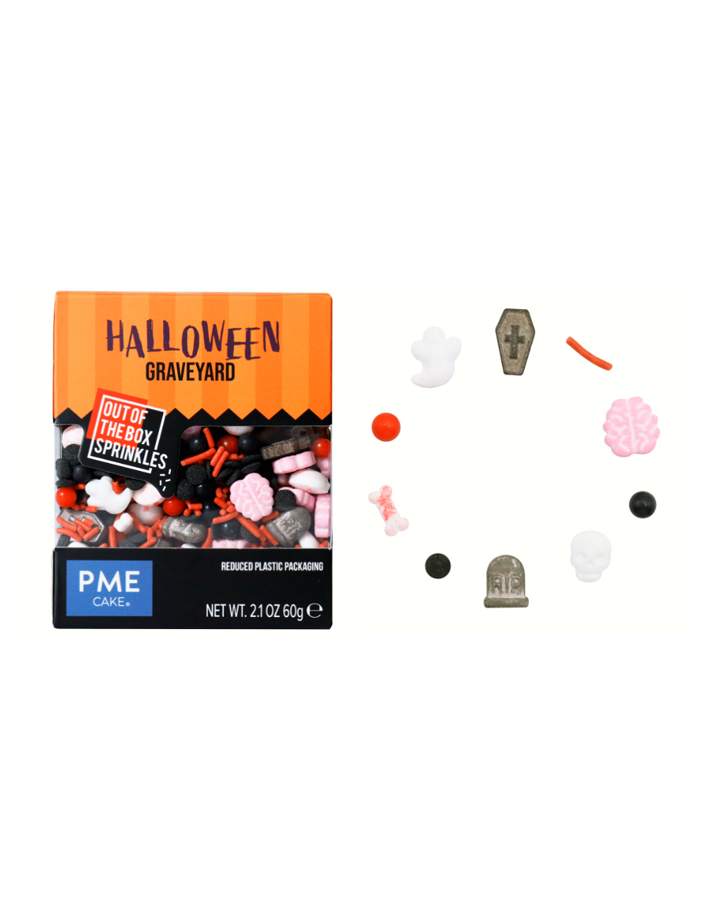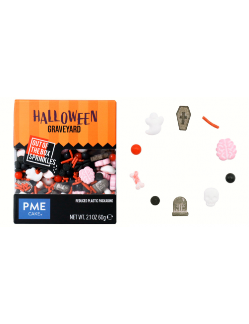 Sprinkles mezcla de perlas y fideos, lápidas, calaveras, ataúdes, cerebros, fantasmas, huesos sangrientos