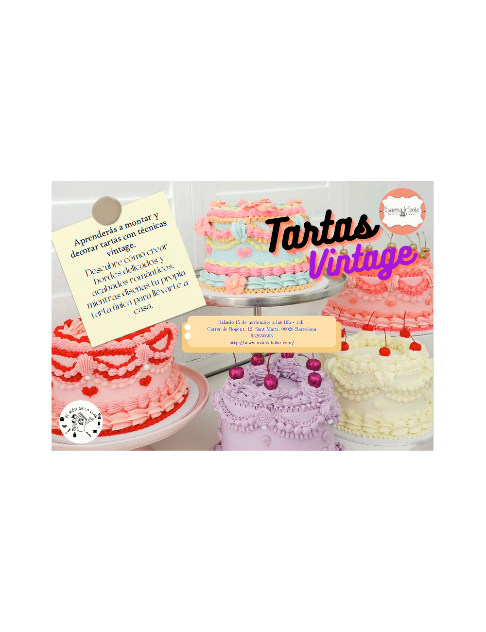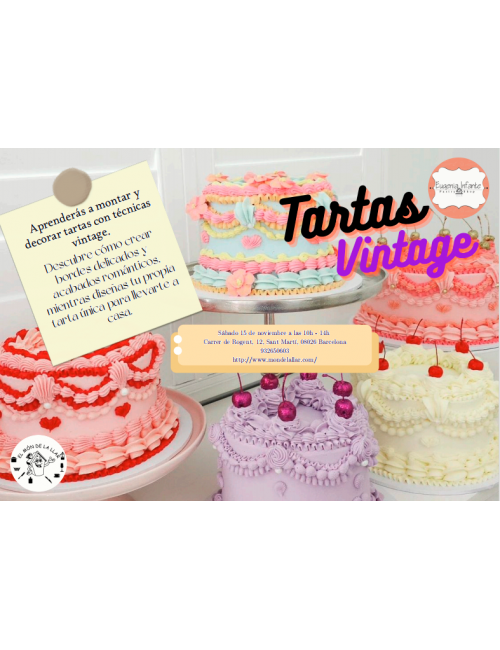En este taller intensivo de 4 horas aprenderás a montar y decorar tartas con técnicas Vintage.