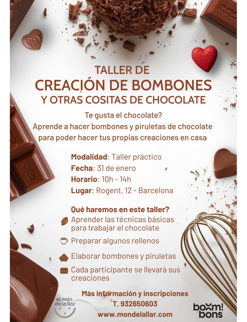 -Aprenderás las técnicas básicas para trabajar el chocolate y conseguir su brillo natural y espectacular