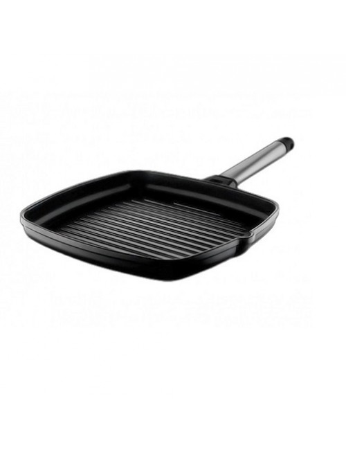 Plancha Fundix 22 cms. Asador Grill de fundición en aluminio indeformable que permite una distribución homogénea del calor. Revestimiento antiadherente Skandia de alta calidad y fácil limpieza. Libre de PFOA. Mango: Desmontable color Verde. Medidas: 22 x 22 cm.